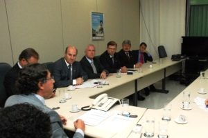 O presidente da Frente Parlamentar em Defesa da Saúde Catarinense, deputado estadual José Milton Scheffer e o vice-presidente, deputado Jorge Teixeira, acompanhados do gerente Administrativo da AHESC-FEHOESC, Carlos Medeiros, e dos deputados federais da bancada catarinense, estiveram reunidos, na quarta-feira (13), em Brasília, com o Secretário Nacional de Atenção à