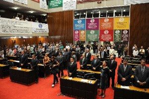 Com o Plenário ostentando faixas e cartazes alusivos a algumas das mais importantes leis aprovadas nesta legislatura, a Assembleia Legislativa de Minas Gerais (ALMG) abriu a 4ª Sessão Legislativa da 17ª Legislatura. Parlamentares, autoridades estaduais e municipais, diretores e funcionários da Casa participaram do evento, marcado pelo lançamento de uma