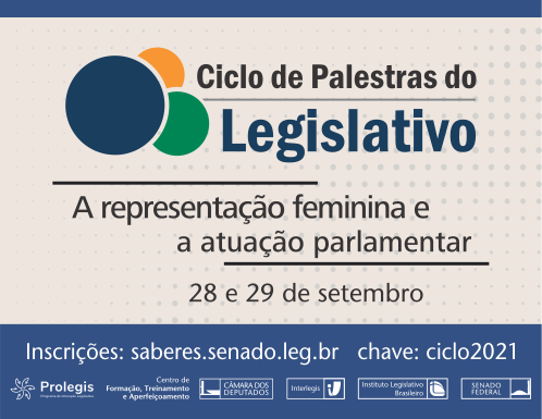 Nos próximos dias 28 e 29 de setembro, o Interlegis promove a segunda edição do Ciclo de Palestras do Legislativo, em parceria com o Centro de Formação, Treinamento e Aperfeiçoamento da Câmara dos Deputados – CEFOR, e com o Programa de Interação Legislativa – Prolegis.