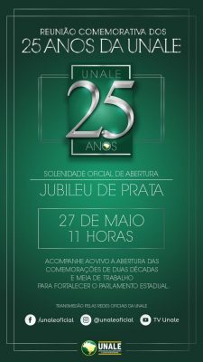 No dia 30 de maio, deste ano, a União Nacional dos Legisladores e Legislativos Estaduais – UNALE, comemora os seus 25 anos de fundação e trabalho em prol do fortalecimento do Parlamento Estadual.