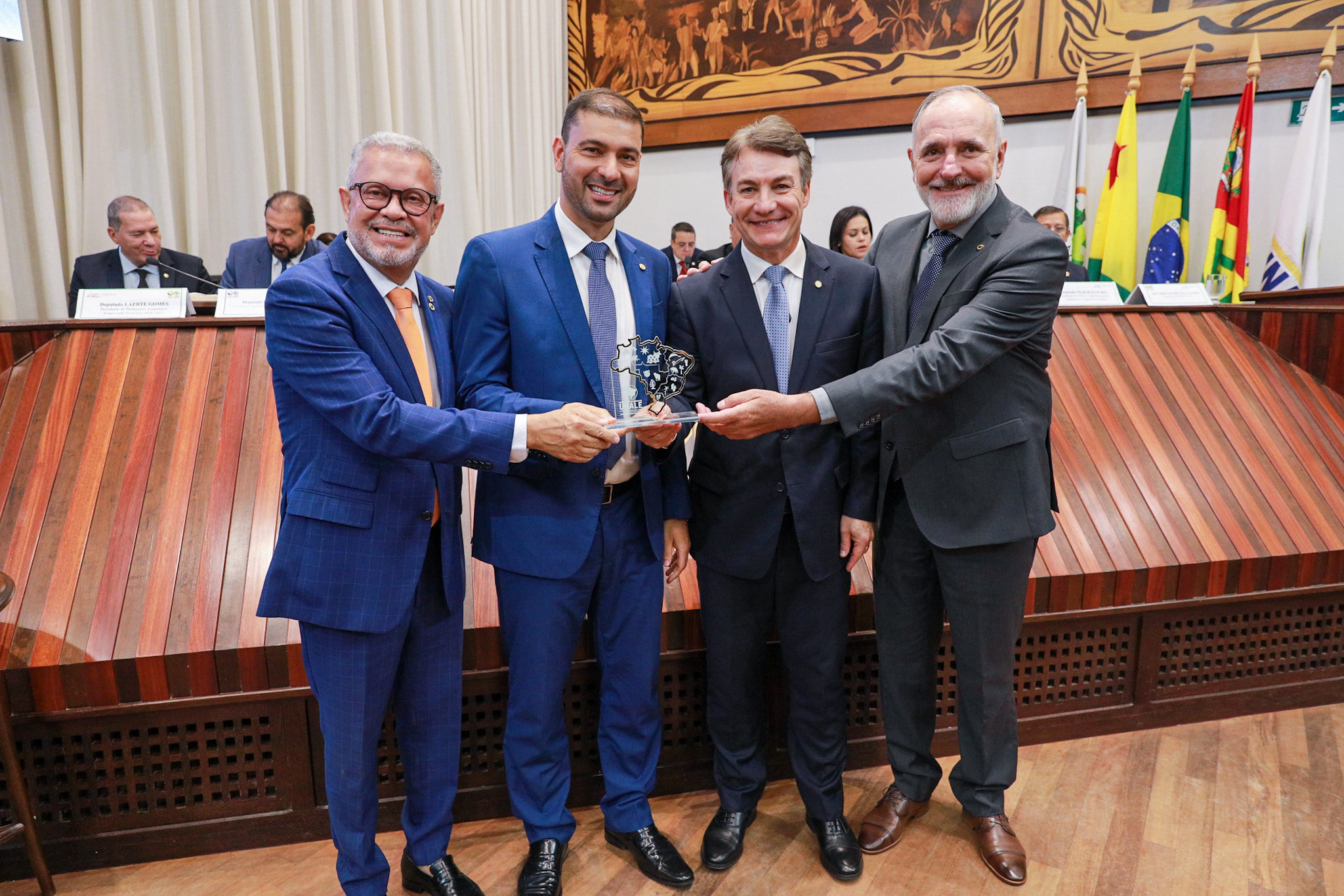 Na oportunidade, o presidente da Unale ainda prestou uma homenagem ao deputado José Luis Tchê (AC), que foi presidente da entidade nos anos de 2011, 2012 e 2014. O parlamentar foi condecorado com uma placa pelos relevantes serviços prestados para os Parlamentos Estaduais e o governo acreano.
