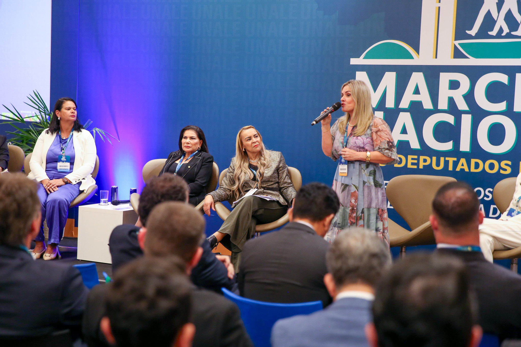 No primeiro dia de debates e discussões da Marcha Nacional dos Deputados Estaduais, a UNALE também lançou o Fórum Nacional de Mulheres Legisladoras, que consiste em um espaço permanente de diálogo, articulação e fortalecimento da representação feminina nos Parlamentos Estaduais e Municipais.