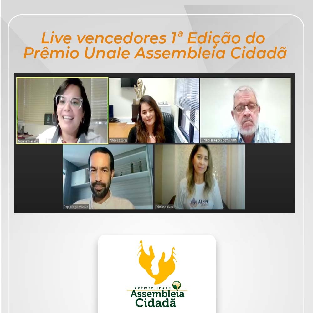 No bate papo online, os representantes das Assembleias vencedoras, Assembleia Legislativa do Espírito Santo (ALES), Tatiana Soares – diretora em exercício, Assembleia Legislativa do Rio Grande do Norte (ALERN), Mário Sérgio – diretor de gestão tecnológica e Assembleia Legislativa de Pernambuco (ALEPE), Cristiane Alves – gestora do projeto 1º, 2º e 3º lugar, respectivamente, falaram da importância da Unale promover a realização desta premiação e a forma que isso estimula à execução de boas práticas pelas Casas Legislativas para com a população.